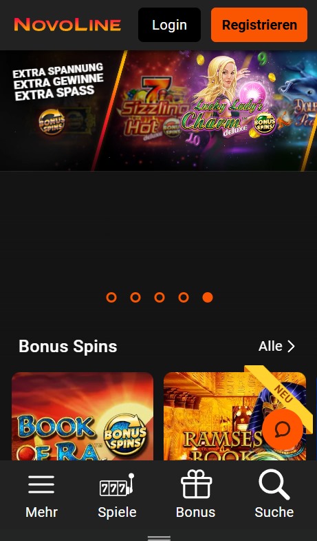 - Mobile App: Die NOVOLINE App bietet direkten Zugriff auf alle Spiele, Boni und Zahlungsoptionen. Bei Installation konnten wir problemlos Einzahlungen vornehmen und Echtgeldspiele starten.